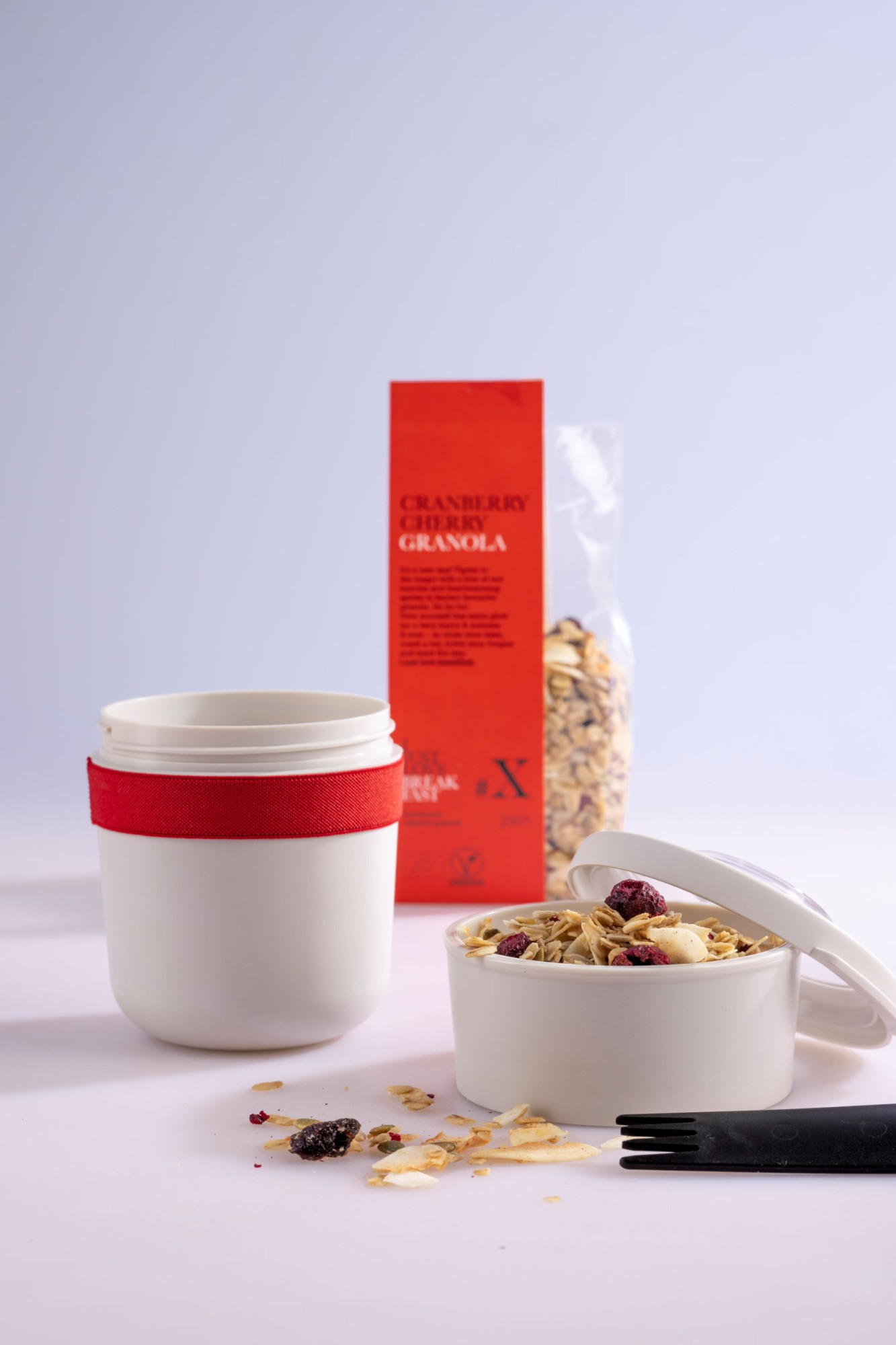 Enjoy your favourite breakfast on-the-go with the Morning and Noon Bowl. Fill the bowl with creamy yoghurt or a colourful smoothie. Also look under the crystal-clear lid. Here hides a secret compartment: a little treasure trove to fill with your favourite granola!