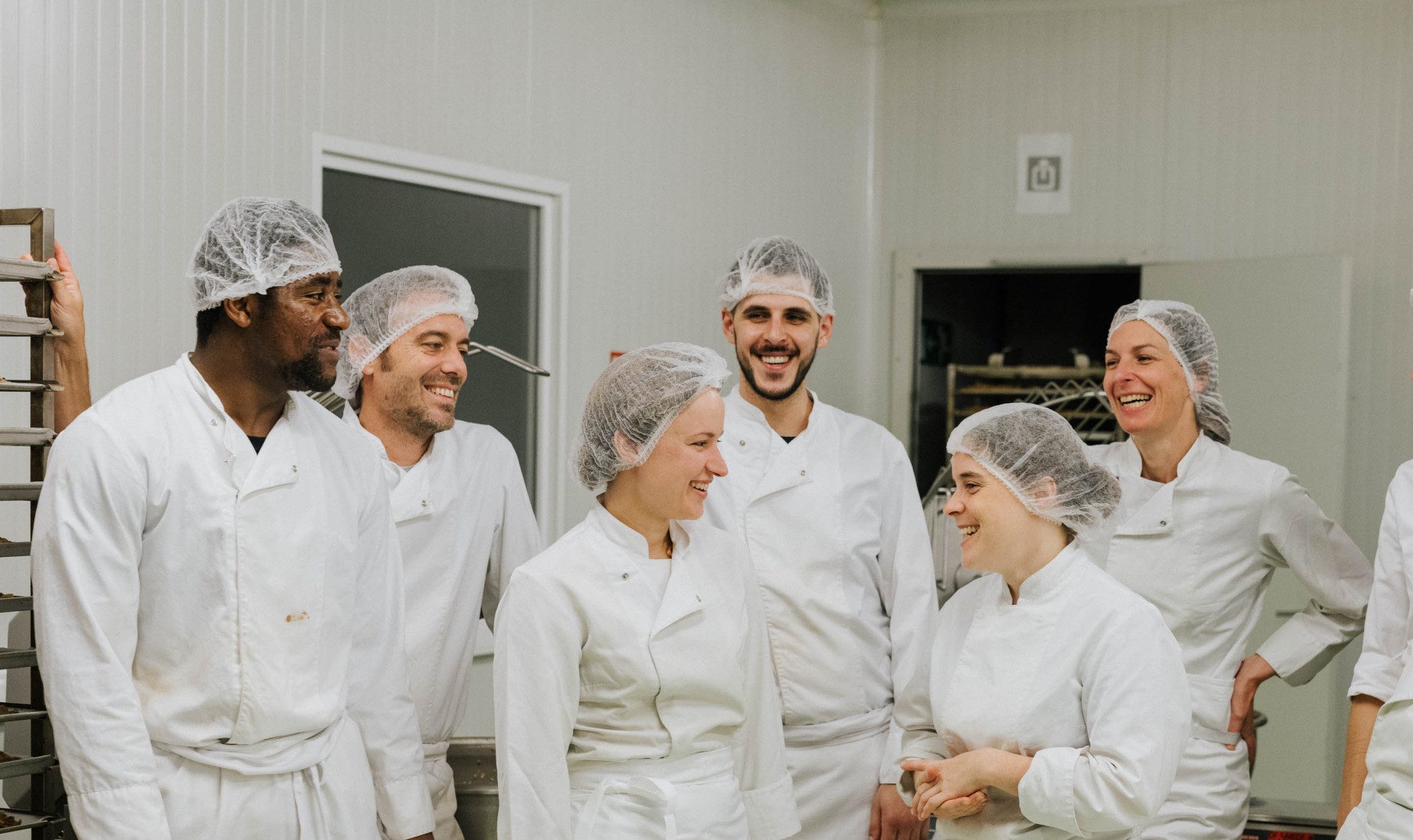 Les ingrédients sont pesés et mélangés selon nos recettes, les chariots sont remplis et les fours tournent à plein régime.
